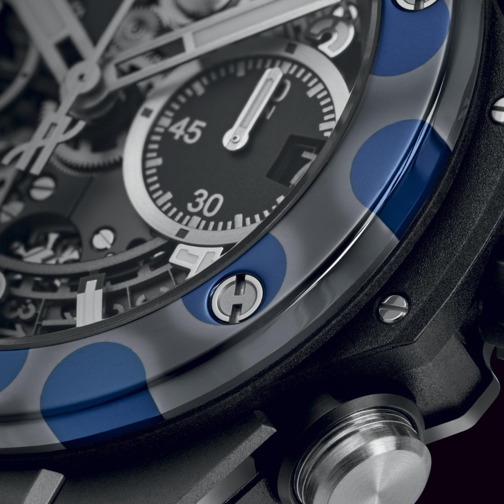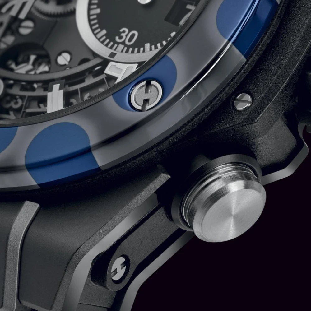 This model represents the continuation of the Art of Fusion philosophy that has defined Hublot since its inception, where modern materials and bold colors meet mechanical structure to create a unique identity. Belonging to the Big Bang line launched in 2005 which became a symbol of luxury sports watches, this version inherits that spirit with a skeleton chronograph design that showcases mechanical movement. It demonstrates Hublot’s mastery in blending manufacturing heritage with energetic contemporary design language.