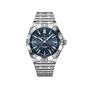 The Chronomat Automatic GMT 40 features a sporty yet refined design with a clean blue dial and polished stainless steel case. Its GMT hand allows tracking of a second time zone, making it practical for frequent travelers. With a unidirectional rotating bezel and braid‑style steel bracelet, this watch blends technical capability with a confident, upscale aesthetic.
