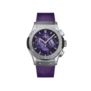 The Hublot Classic Fusion Ref. 541.NX.8970.RX.PLW23 features a modern, elegant sporty style with a balanced and streamlined design that still carries a distinct personality. The robust 904L steel case combined with a unique purple rubber strap creates a striking highlight. The deep purple chronograph dial harmonizes perfectly with the luminous baton hands, offering a luxurious, youthful feel suitable for those who appreciate subtle elegance and wish to express their aesthetic taste without being flashy.