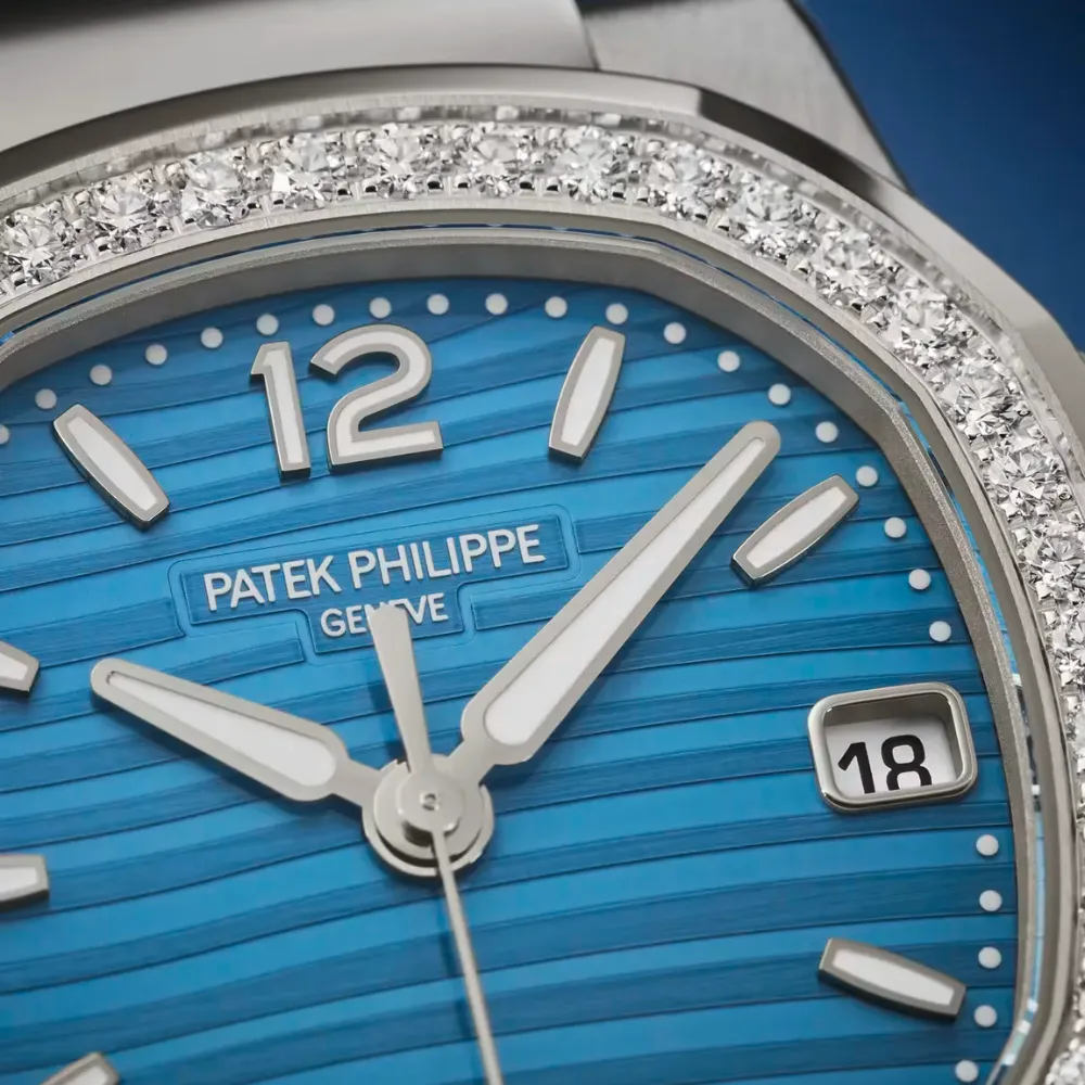 The Nautilus Ref. 7010G-013 White Gold is a refined interpretation of the iconic Nautilus design, combining sporty elegance with contemporary femininity. Featuring a distinctive blue textured dial, a lightweight blue canvas strap, and a delicately stone-set bezel crafted with precision-cut synthetic stones, this 38mm timepiece offers a modern yet timeless expression of luxury suitable for everyday wear.