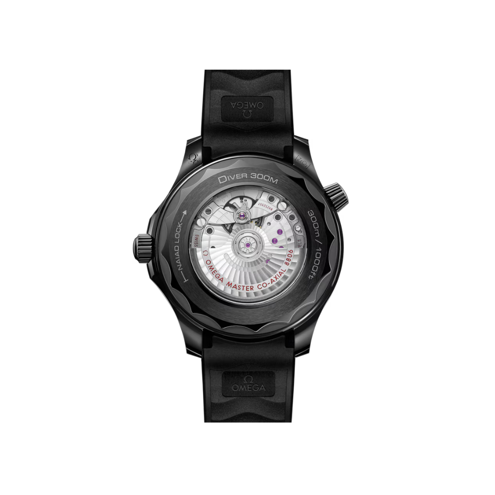 The Omega Seamaster Diver Ref# 210.92.44.20.01.003 features a bold modern diver style with a powerful full black color scheme. It stands out with a 904L stainless steel case finished in matte black and a dial with an embossed wave pattern that creates depth, combined with a high-quality black rubber strap. This design offers a mysterious, robust, yet refined sensation, suitable for diving exploration and men who love a strong, distinctive personality.