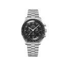 The Omega Speedmaster Ref# 310.30.42.50.01.001 showcases a classic sporty chronograph style with a balanced design. It features a strong black dial with clear luminous baton hands and hour markers, framed by a signature tachymeter bezel that creates a professional standard look. The refined 904L stainless steel integrated bracelet adds a masculine yet elegant touch, making it suitable for both daily use and occasions requiring neatness and class.