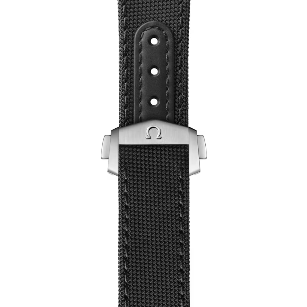 The Omega Speedmaster Ref# 310.32.42.50.01.001 features a classic chronograph design embodying a professional sporty spirit. It stands out with a strong black dial featuring a balanced 3-sub-dial layout and a signature tachymeter scale, creating a technical and precise appearance. Combined with a black technical fabric strap, it offers a dynamic, lightweight, and flexible feel, suitable for those who love a standard sporty style while maintaining elegance for daily wear.