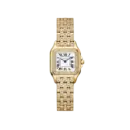 The Panthère de Cartier watch Ref. WJPN0059 features a luxurious feminine style deeply imbued with Parisian chic. It showcases a soft rounded square case design crafted from 904L stainless steel finished in a noble gold tone, combined with a flexible small-link bracelet that feels like a piece of high-end jewelry on the wrist. The silver dial with classic Roman numerals and blue sword hands preserves traditional elegance, while the exquisite artificial stone settings on the bezel and bracelet add a gentle, sophisticated sparkle, making it perfect for ladies who love confident and classy beauty.