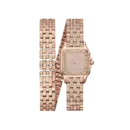 The Panthère de Cartier watch Ref. WJPN0062 exudes a luxurious feminine style blended with classic Parisian flair. It features a soft rounded square case design crafted from 904L stainless steel finished in a refined rose gold tone, combined with a flexible multi-link bracelet that feels like a piece of high-end jewelry on the wrist. The dial is meticulously set with exquisitely cut artificial stones, providing just the right amount of sparkle—elegant but not ostentatious—making it perfect for ladies who appreciate a sophisticated, confident, and timeless class.