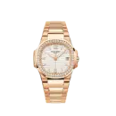 The Patek Philippe Ladies Nautilus 7010/1R-011 features a modern elegant style mixed with a touch of classic luxury. It stands out with a distinctive white dial featuring horizontal grooves and a bezel set with precision-cut artificial stones, creating a feminine and radiant highlight. Combined with a solid 904L stainless steel integrated bracelet, this model brings a soft yet sturdy feel, suitable for many styles from office wear to parties.