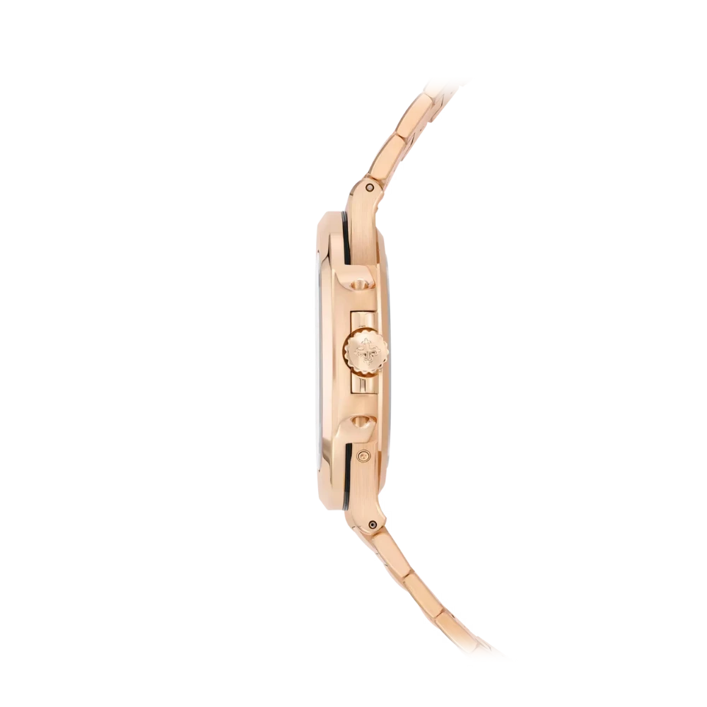 This model showcases a refined and complex aesthetic. The 904L stainless steel strap is designed as a seamless integrated bracelet, providing a solid grip. The signature rounded bezel features a luxurious polished finish. The chocolate brown dial is arranged with a moon phase display and sub-dials, while luminous hands and markers ensure visibility, emphasizing a look that is technically deep and elegant.