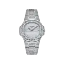 This model embodies modern luxury sports style with a strong visual identity. The signature rounded-octagonal Nautilus case and seamlessly integrated bracelet provide a refined yet robust presence, while the fully synthetic-stone-set dial and bezel add brilliance without overpowering the design. Clean baton hands and markers maintain balance and legibility, making the watch elegant, versatile, and suitable for a wide range of occasions.