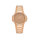 This model embodies modern luxury with the graceful athletic spirit of the Nautilus collection. The warm rose-gold palette, champagne satin dial, and clean baton hands and markers create a soft, feminine presence while maintaining a refined sports-watch character. Elegant yet versatile, it is ideal for daily wear as well as formal occasions, appealing to women who value understated prestige and sophisticated design.