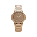 This model embodies modern luxury infused with the signature sporty elegance of the Nautilus. Soft rounded contours, a warm rose-gold palette, and a satin-finished dial deliver a graceful, feminine presence, while clean baton hands and markers maintain clarity and restraint. Designed for daily wear yet refined enough for formal occasions, it appeals to those who appreciate discreet prestige and elevated aesthetics.