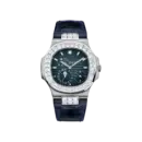 The Patek Philippe Nautilus Watch – 5724G-001 features a sophisticated sporty style characteristic of the Nautilus line, with a 904L stainless steel case paired with a high-quality navy blue leather strap. It creates a modern yet refined appearance, highlighted by a blue dial with horizontal brushing that adds depth. The bezel, set with precision-cut artificial stones, creates a luxurious accent that is not ostentatious, suitable for gentlemen who appreciate discreet class, elegance, and flexibility in both work and special occasions.