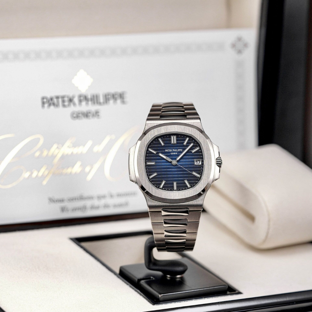 Inspired by the Nautilus line born in 1976—a milestone marking the appearance of high-end sports watches with a design taken from ship portholes—this White Gold Watch version continues that spirit. Through the iconic case shape, the navy blue horizontally brushed dial evoking water waves, and a minimalist philosophy focused on practicality, it combines with a stable Japanese Miyota movement, an 8.3mm slim profile, and 100m water resistance. It creates a timepiece that harmonizes historical legacy, refined beauty, and a modern lifestyle that transcends time.