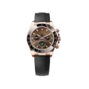 This modern Oysterflex version combines a rose-gold coated 904L steel case, a sleek black ceramic tachymeter bezel, and a captivating glossy brown dial —