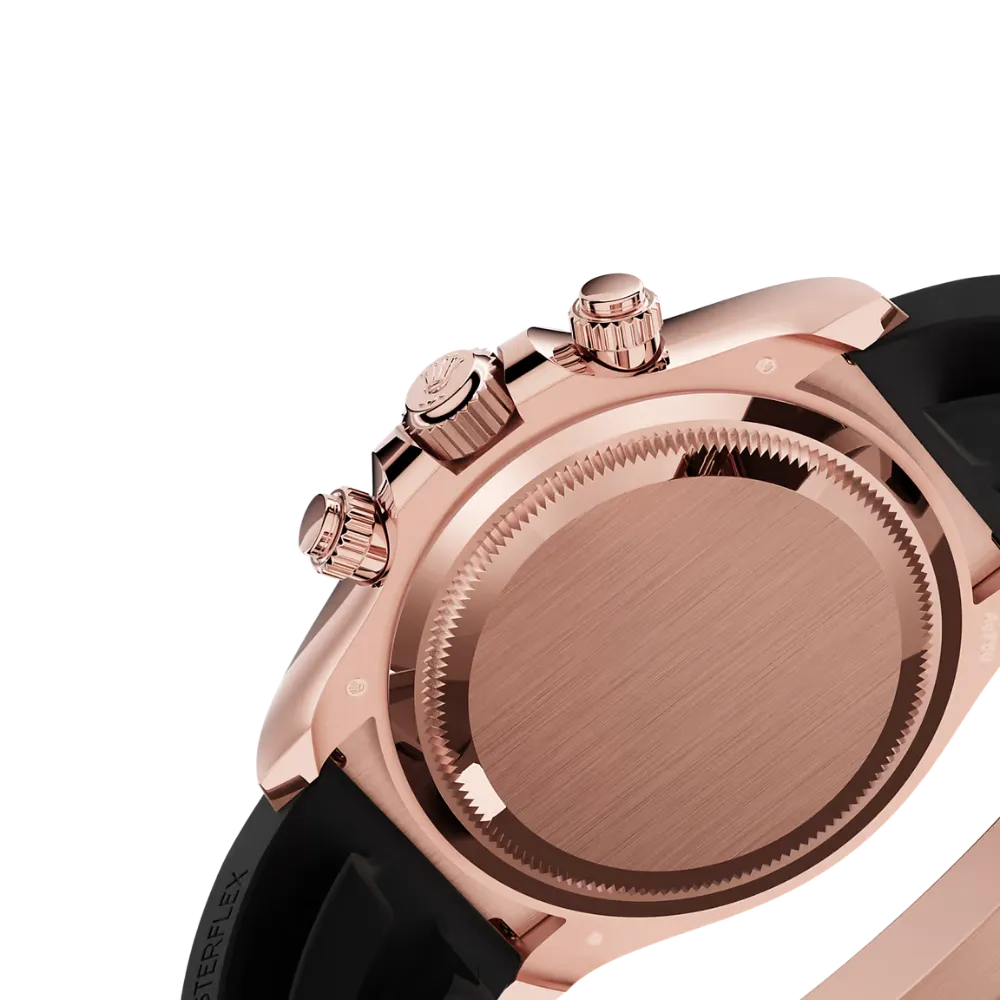 The Cosmograph Daytona line embodies luxury sports performance, merging the intensity of motorsport precision with the sophistication of rose-gold tones