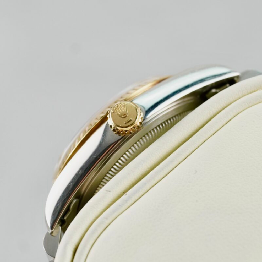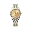 first self-changing date wristwatch. Combining a Champagne dial, fluted bezel, and the elegant two-tone Jubilee bracelet,