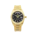 Classic power with a dignified presence. The black dial creates a strong visual contrast against the yellow gold tone, while the fluted bezel adds a signature Rolex character. Paired with the President bracelet, this watch feels authoritative, refined, and unmistakably prestigious.