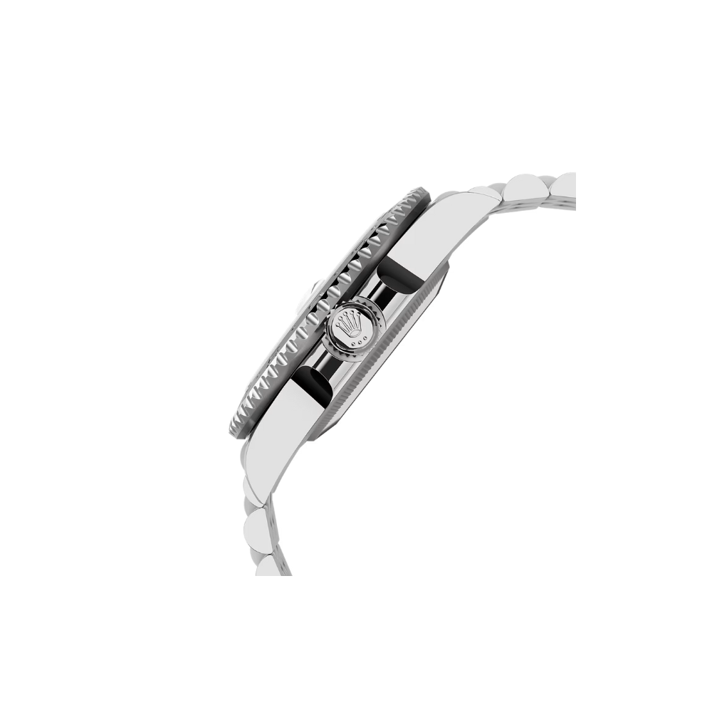 The Rolex GMT-Master II 40 mm Ref# M126710GRNR-0003 embodies a strong, sporty, and professional aesthetic. Characterized by a clear black dial and a bidirectional rotatable 24-hour bezel, this timepiece creates a distinct technical highlight. Paired with the flexible and durable Jubilee bracelet in 904L steel, it offers a solid yet comfortable experience, making it the ideal choice for frequent travelers who value practicality alongside sophisticated class.