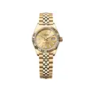 The Rolex Lady-Datejust 28 Ref. 279178-0003 radiates classic elegance with a deeply feminine spirit. It features a harmonious blend of a warm gold dial, a sharp Fluted bezel, and a soft Jubilee bracelet, creating a neat yet striking appearance. This timepiece is perfect for ladies who appreciate a sophisticated, elegant style that is versatile enough for both office environments and formal occasions.