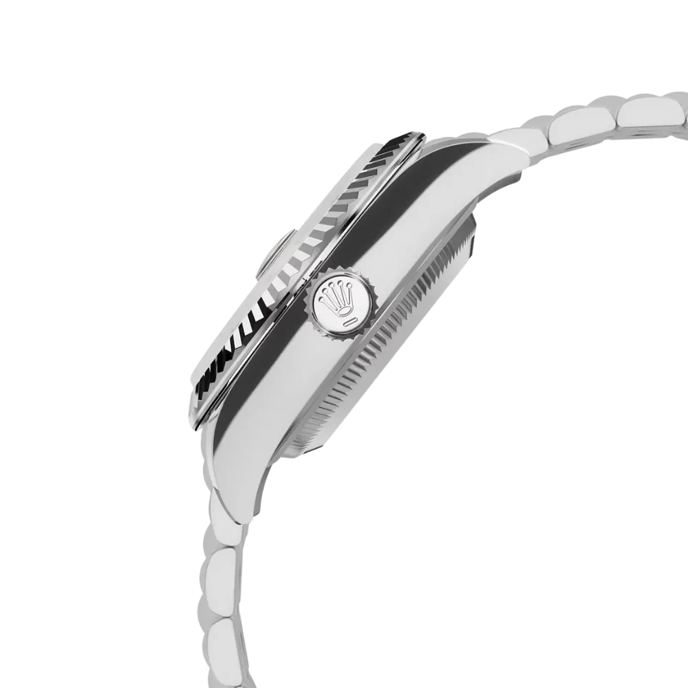 blends timeless Rolex heritage with modern feminine elegance. Crafted in 904L Oystersteel and