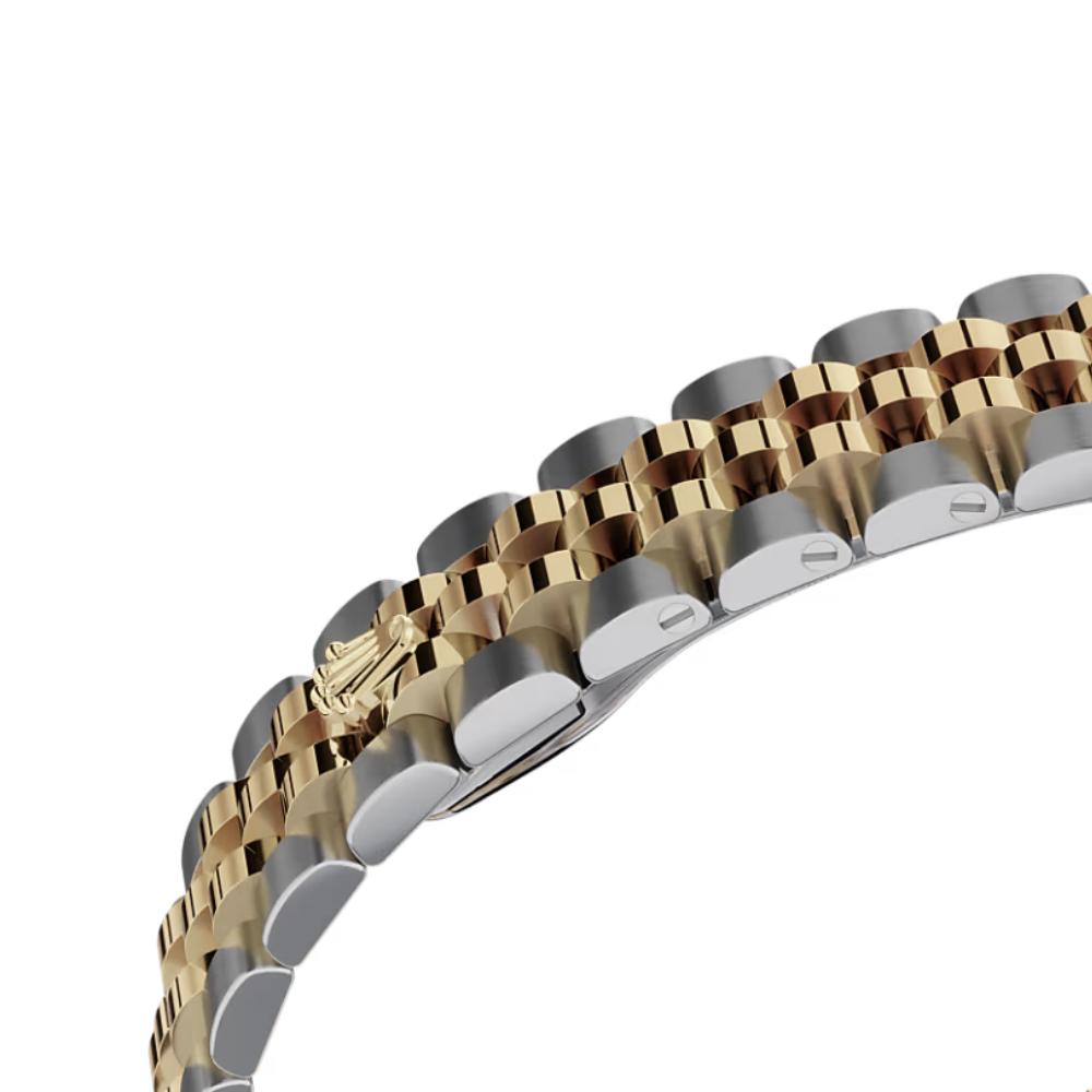 This model showcases a refined and delicate aesthetic. The Jubilee bracelet, crafted from 904L steel with a demi-yellow gold finish, offers a soft and comfortable fit. The round bezel set with synthetic stones creates a captivating highlight, framing the bright dial. Synthetic stone markers are arranged harmoniously to provide a gentle sparkle, ensuring the watch is not only a timekeeper but a piece of jewelry that exudes class.