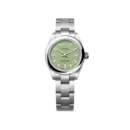pistachio dial paired with a smooth domed bezel and the iconic Oyster bracelet.