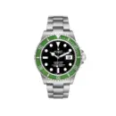 dial with luminous markers, and a distinctive green unidirectional bezel, this watch blends