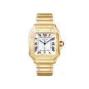 Bold yet refined, the Santos de Cartier Large Automatic embodies iconic luxury with a confident masculine character. The polished gold-toned bezel contrasts elegantly with the silver Roman numeral dial and blued sword-shaped hands, while the integrated stainless steel bracelet enhances both comfort and presence. Perfectly suited for business, formal occasions, or elevated daily wear, it reflects timeless sophistication with a modern edge.
