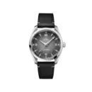 This model showcases a sophisticated and minimalist aesthetic. The high-quality black leather strap is soft and comfortable on the wrist. The fixed bezel, crafted from smooth 904L stainless steel with an elegant design, frames the dial perfectly. The classic grey-black dial features signature lettering, while vintage-style Arabic hands and hour markers ensure excellent readability and a nostalgic charm.