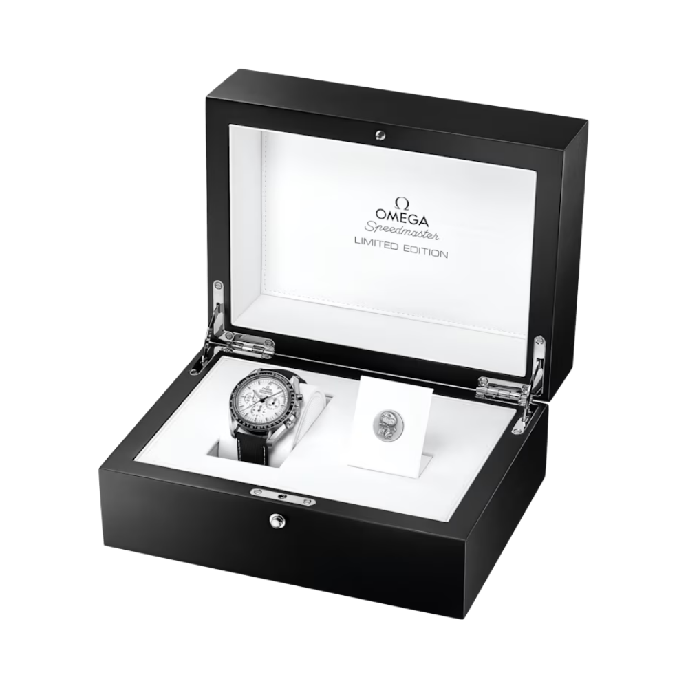 Inspired by the historic milestone of 1969 when mankind first set foot on the Moon, this Speedmaster anniversary edition was created as a tribute to the spirit of space exploration and uncompromising accuracy. Drawing from the legendary Speedmaster Moonwatch trusted by NASA during critical space missions, the three-register chronograph dial recalls the life-saving importance of precise time measurement beyond Earth. Combined with modern materials such as 904L stainless steel, sapphire crystal, and a reliable Japanese Miyota movement, this timepiece becomes a mechanical testament to human ambition, technical mastery, and the courage to push beyond known limits.