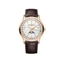 Classic and refined with a strong haute horlogerie influence, the watch features a harmonious complete calendar display, a warm rose-gold toned case, and a brown leather strap that enhances its gentlemanly character. The balanced silver dial and refined hands create a dignified presence on the wrist, making it suitable for formal attire, business settings, and collectors who appreciate timeless elegance with depth.